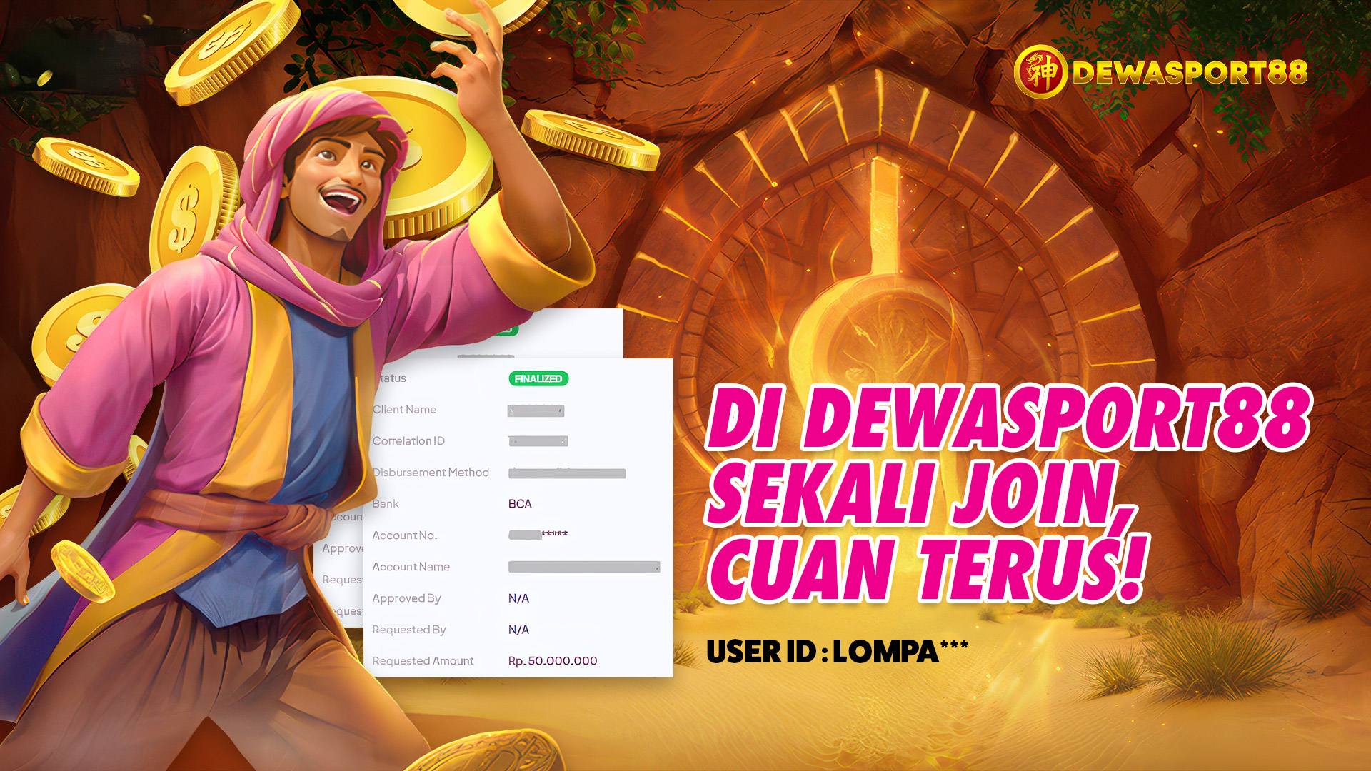 Deretan kisah sukses kembali menghiasi halaman Testimoni Kemenangan DEWASPORT88, kali ini datang dari member dengan ID LOMPA* yang berhasil mencatatkan kemenangan 100 juta DEWASPORT88 saat memainkan permainan Alibaba’s Cave of Fortune dari provider ternama PG Soft. Kemenangan ini menjadi sorotan karena diraih melalui permainan bertema petualangan klasik yang dikemas dengan sentuhan modern dan fitur bonus berpotensi besar.