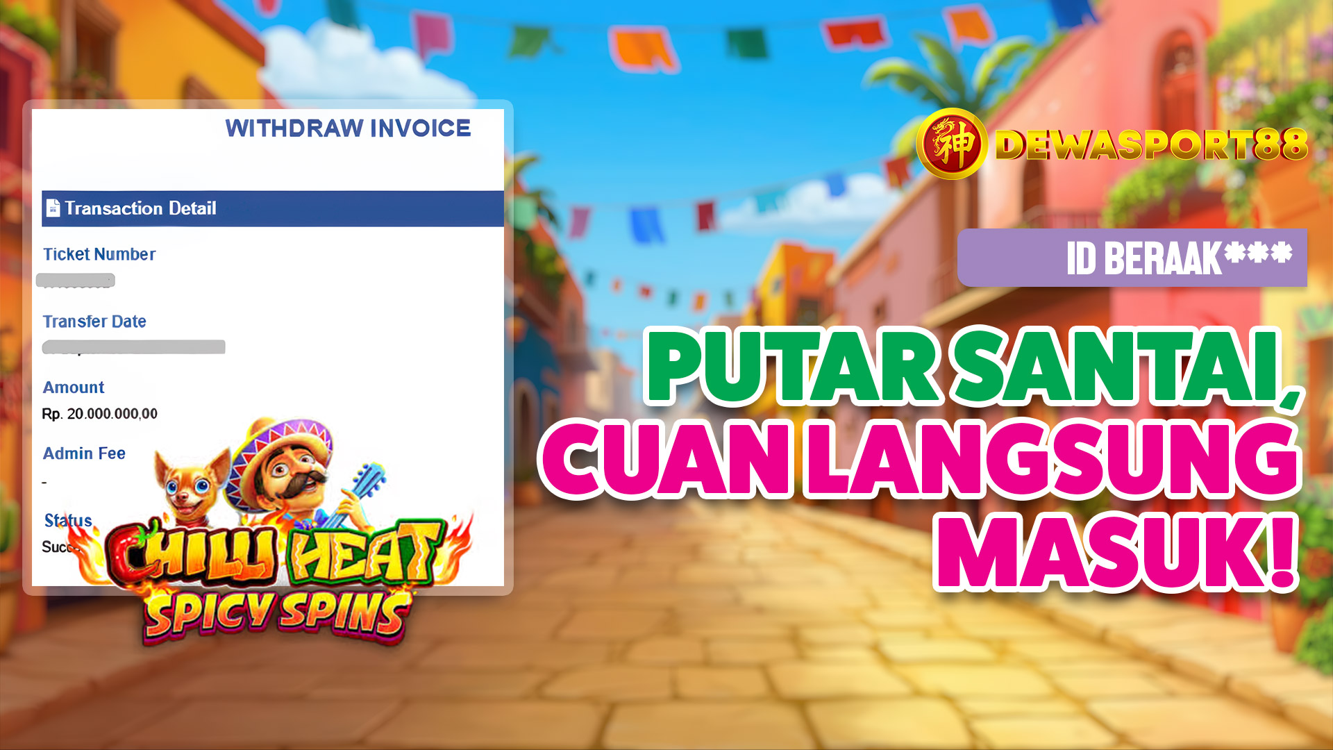 Platform DEWASPORT88 terbukti aman dan cepat dalam memproses WD. Bergabung sekarang, mainkan Chilli Heat Spicy Spins, dan rasakan sensasi kemenangan yang bisa langsung dicairkan! ⚡🎰