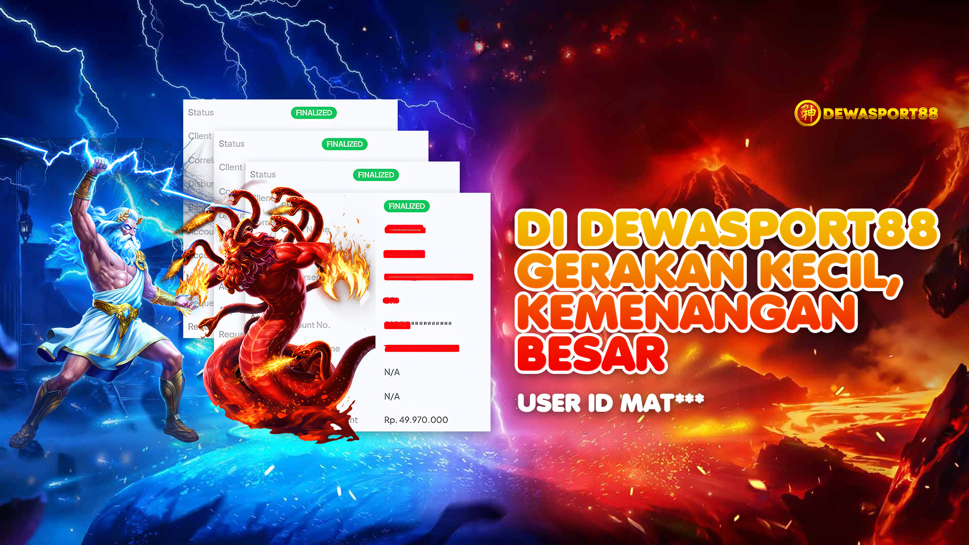 Testimoni Kemenangan DEWASPORT88 kembali menghadirkan kabar menggembirakan untuk seluruh pemain setia, terutama datang dari salah satu member aktif dengan ID MATI*** yang berhasil meraih kemenangan besar hingga 200 juta rupiah saat bermain di permainan Zeus vs Typhon dari Pragmatic Play. Kemenangan ini menjadi salah satu momen luar biasa yang menambah panjang daftar kemenangan fantastis di platform DEWASPORT88, tempat bermain yang dikenal dengan beragam pilihan permainan berkualitas, peluang menang yang kompetitif, serta pengalaman bermain yang memuaskan.