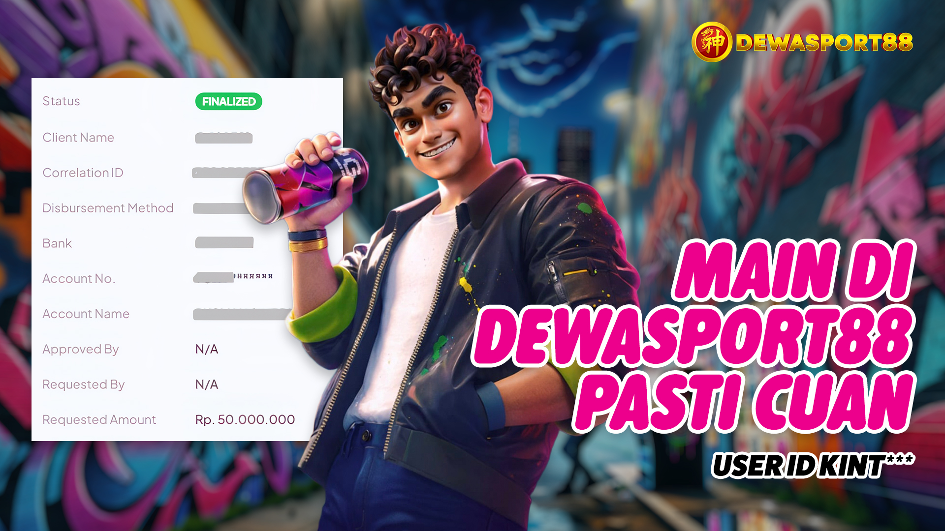 testimoni kemenangan DEWASPORT88 member kembali menjadi cerita yang menarik perhatian di kalangan pemain slot online. Kali ini, kemenangan besar berhasil dicatatkan oleh member dengan user ID KINT* yang disebut sukses mengumpulkan total kemenangan hingga 50 juta rupiah melalui permainan Graffiti Rush dari provider PG Soft di platform DEWASPORT88.